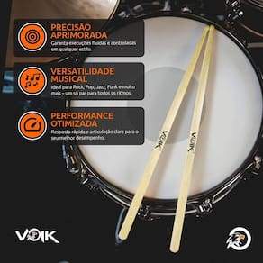 Combinando qualidade superior, design cuidadosamente projetado e um excelente custo-benefício, o par de baquetas Voik 5B é a escolha confiável para músicos exigentes que não abrem mão de desempenho e conforto.