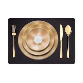 Kit 4 pçs jogo americano mesa jantar sala restaurante couro Cor: preto Tamano: 43x30 Jogo americano couro retangular + porta copos