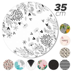 Conteúdo da Embalagem: 04 Capas de Sousplat para base redonda de 35cm x 35cm. 04 Bases de Sousplat MDF redonda 35cm x 35cm.
