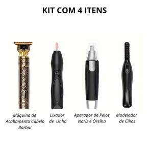 Vem com aparador, lixa, mini máquina para acabamentos, enrolador de cílios e mais.