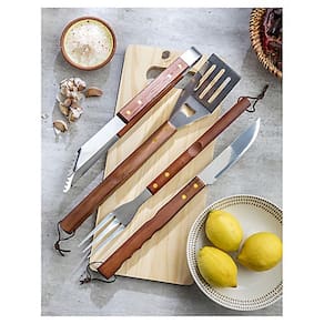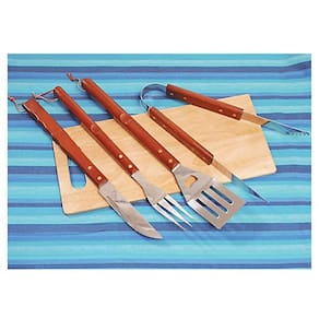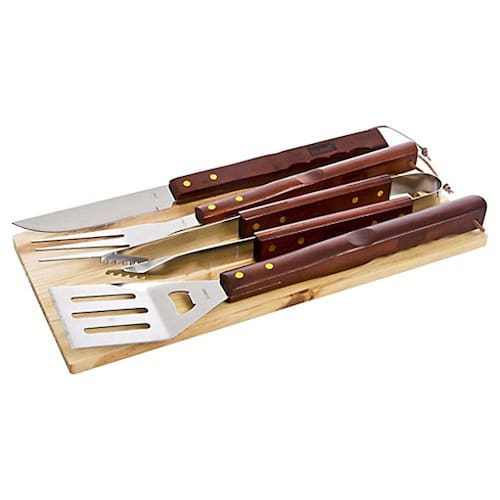 INCLUSO: 1 garfo, 1 faca, 1 espátula, 1 pegador e 1 tábua de madeira.