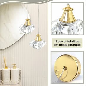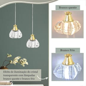 Uma bela peça e delicada é o pendente de cristal Bet13. O pingente cristal K9 torna o espaço mais elegante independente do ambiente que for inserido. O detalhe em dourado combina com vários tipos de ambientes, complementando e realçando a beleza da sua casa.