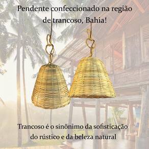 Kit 4 Pendente Fibra Natural Rustico Artesanal Em Palha Nat28 Trancoso é a tradução da sofisticação do rústico e da beleza natural, harmônicos entre si. A essência da brasilidade da Bahia expressada em peças únicas e diferenciadas, produzidas integralmente com matéria-prima local e por artesãos da comunidade. Experencie a riqueza da arte brasileira sustentável e sinta essa a energia renovada.