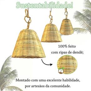 - Cor: Fio/canopla: Marrom Cúpula: Ripas de dendê natural