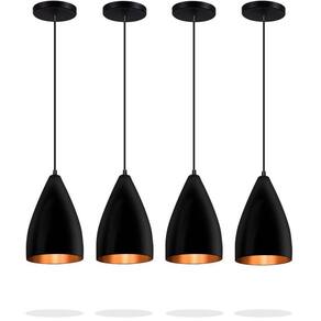 Kit 4 Pendentes Vegas Preto Textura / Cobre R.R.J.V Kit 4 Pendentes Vegas preto Textura / Bronze Lustre Pendente Modelo: Vegas Cor: Preto Com Interior Cobre Medidas Aproximadas: Altura: 18 cm Diâmetro: 15 cm Canópla de teto: 12 cm Soquete e-27 plástico Material: alumínio Marca R.R.J.V Negócios O pendente acompanha 1 Um Metro de fio com altura ajustável. Marca: R.R.J.V. Negocios