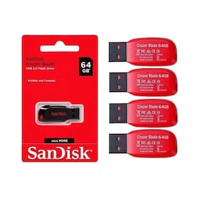 4 embalagens lacrada com 1 memória pendrive 64gb em embalagem