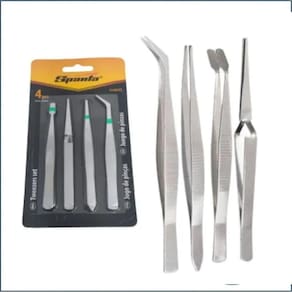 ? Benefícios do Produto - Conjunto com 4 pinças de formatos variados para múltiplas aplicações - Aço inoxidável de alta durabilidade e resistência à oxidação - Design anatômico com superfície texturizada para melhor pegada - Ideal para trabalhos delicados e de precisão - Versátil: pode ser em eletrônica, artesanato, bijuterias, hobby, laboratório e muito mais