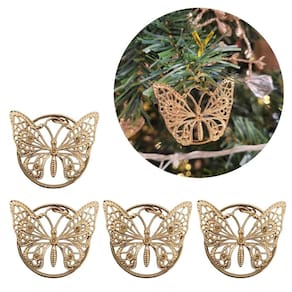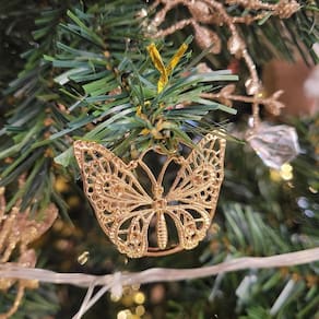 Adicione elegância e delicadeza à sua decoração natalina com este jogo de 4 pingentes de borboleta. Feitos em metal rosê gold, cada peça apresenta um acabamento sofisticado e brilhante, ideal para compor árvores de Natal, guirlandas ou outros arranjos decorativos. As argolas inclusas permitem fácil fixação, garantindo praticidade e charme ao decorar.