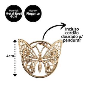 Design de Borboleta em Metal Rosê Gold: Detalhes refinados que trazem um toque moderno e elegante.