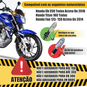 Kit 4 Pisca de Led Moto Cb250 Twister Titan Fan Star 160 Sequencial Kit 4 Piscas LED Sequenciais - CB250 Twister - Compatível com Titan 160 / Fan 160 2015 a 2024 Transforme sua moto com um visual moderno e esportivo O Kit 4 Piscas LED Sequenciais é a escolha ideal para quem deseja dar um toque diferenciado à moto, com design esportivo e iluminação de alta qualidade. Compatível com as motos Honda Titan 160, Fan 160, CB250 Twister, entre outras. Melhore a visibilidade e destaque-se no trânsito. Compatibilidade: -honda Titan 160 2015 a 2024 -honda Titan 150 2015 a 2024 -honda Start 160 2015 a 2024 -honda Fan 125/150/160 2015 a 2024 -honda CB 250 Twister 2016 a 2024 NÃO serve em XRE 190 XRE 300 NÃO Serve em CB 300 Nenhuma NÃO Serve em BROS Nenhuma Verifique se sua seta e de encaixe, ou de parafuso não serve em setas que são fixadas por porca rosca. Características do Produto: Ilumine seu caminho com segurança e estilo. Fácil instalação com apenas dois fios positivo e negativo . Estrutura resistente à água para enfrentar qualquer clima. Alta intensidade de luz com tecnologia LED de baixo consumo. -lente cristal não é lente fumê . -baixo consumo de energia - LEDs econômicos. -carcaça em ABS de alta resistência. -leds de alto brilho para melhor visibilidade. -alimentação: 12V. -conexão de 2 fios para instalação simples. -design esportivo e moderno. -produzido com materiais de alta qualidade, testados conforme normas de segurança. Conteúdo da Embalagem: -4 Piscas LED Sequenciais Instalação: Desenvolvido para encaixe perfeito sem necessidade de adaptações. Recomendamos que a instalação seja realizada por um especializado para garantir o melhor desempenho. Informações Importantes: -não nos responsabilizamos por mau uso ou instalação inadequada. Marca: Não Informado Ean: 7908120417384
