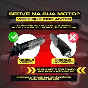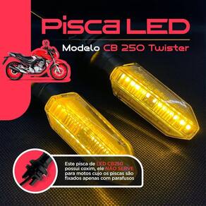 Kit 4 Pisca de Led Moto Cb250 Twister Titan Fan Star 160 Sequencial Kit 4 Piscas LED Sequenciais - CB250 Twister - Compatível com Titan 160 / Fan 160 2015 a 2024 Transforme sua moto com um visual moderno e esportivo O Kit 4 Piscas LED Sequenciais é a escolha ideal para quem deseja dar um toque diferenciado à moto, com design esportivo e iluminação de alta qualidade. Compatível com as motos Honda Titan 160, Fan 160, CB250 Twister, entre outras. Melhore a visibilidade e destaque-se no trânsito. Compatibilidade: -honda Titan 160 2015 a 2024 -honda Titan 150 2015 a 2024 -honda Start 160 2015 a 2024 -honda Fan 125/150/160 2015 a 2024 -honda CB 250 Twister 2016 a 2024 NÃO serve em XRE 190 XRE 300 NÃO Serve em CB 300 Nenhuma NÃO Serve em BROS Nenhuma Verifique se sua seta e de encaixe, ou de parafuso não serve em setas que são fixadas por porca rosca. Características do Produto: Ilumine seu caminho com segurança e estilo. Fácil instalação com apenas dois fios positivo e negativo . Estrutura resistente à água para enfrentar qualquer clima. Alta intensidade de luz com tecnologia LED de baixo consumo. -lente cristal não é lente fumê . -baixo consumo de energia - LEDs econômicos. -carcaça em ABS de alta resistência. -leds de alto brilho para melhor visibilidade. -alimentação: 12V. -conexão de 2 fios para instalação simples. -design esportivo e moderno. -produzido com materiais de alta qualidade, testados conforme normas de segurança. Conteúdo da Embalagem: -4 Piscas LED Sequenciais Instalação: Desenvolvido para encaixe perfeito sem necessidade de adaptações. Recomendamos que a instalação seja realizada por um especializado para garantir o melhor desempenho. Informações Importantes: -não nos responsabilizamos por mau uso ou instalação inadequada.