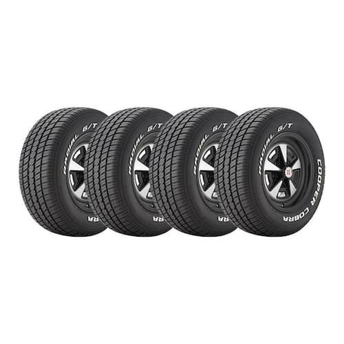 O pneu Cobra Radial G/T para todas as estações apresenta letras brancas em relevo para quem prefere conservar o visual característico do seu muscle car. Pneu ideal para o seu carro clássico. Se o seu carro clássico parece pertencer a um anúncio de carro antigo, o pneu Cobra Radial G/T é perfeito para você. Esses pneus apresentam letras brancas em relevo, para combinar com seu veículo.