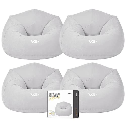 - Dimensões: 105 x 65cm;Kit 4 Poltrona InflÃvel Puff Lazy Fashion Aveludado Assento Pufe VG Plus Cinza