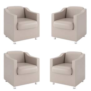 Kit 4 Poltronas Bia Decorativa Reforçada Recepção Clinica Salão Sala De Estar Courino - Bege