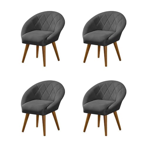 AS IMAGENS SÃO MERAMENTE ILUSTRATIVAS E PODEM SOFRER VARIAÇÕES DE COR E PEQUENOS DETALHES DE ACORDO COM O SEU MONITOR, ILUMINAÇÃO DO AMBIENTE E ATÉ MESMO A SUA PERCEPÇÃO 4 Poltronas Decorativa Canastra Estofada Linho Cinza PÃs Palito em Madeira MaciÃa