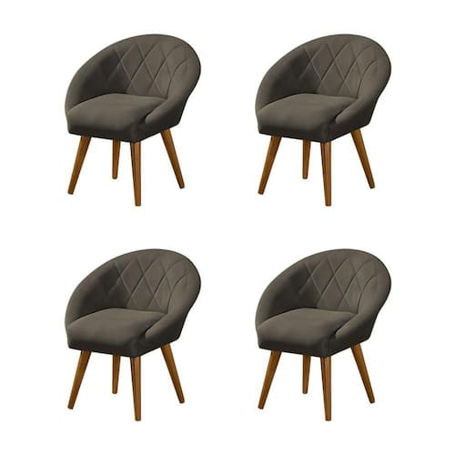 AS IMAGENS SÃO MERAMENTE ILUSTRATIVAS E PODEM SOFRER VARIAÇÕES DE COR E PEQUENOS DETALHES DE ACORDO COM O SEU MONITOR, ILUMINAÇÃO DO AMBIENTE E ATÉ MESMO A SUA PERCEPÇÃO 4 Poltronas Decorativa Canastra Estofada Linho Marrom Cafà PÃs Palito em Madeira MaciÃa