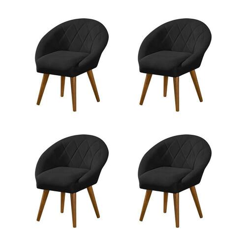 AS IMAGENS SÃO MERAMENTE ILUSTRATIVAS E PODEM SOFRER VARIAÇÕES DE COR E PEQUENOS DETALHES DE ACORDO COM O SEU MONITOR, ILUMINAÇÃO DO AMBIENTE E ATÉ MESMO A SUA PERCEPÇÃO 4 Poltronas Decorativa Canastra Estofada Linho Preto PÃs Palito em Madeira MaciÃa