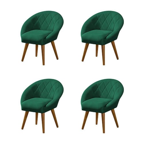 AS IMAGENS SÃO MERAMENTE ILUSTRATIVAS E PODEM SOFRER VARIAÇÕES DE COR E PEQUENOS DETALHES DE ACORDO COM O SEU MONITOR, ILUMINAÇÃO DO AMBIENTE E ATÉ MESMO A SUA PERCEPÇÃO 4 Poltronas Decorativa Canastra Estofada Veludo Verde Esmeralda PÃs Palito em Madeira MaciÃa