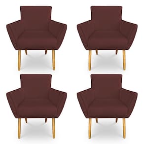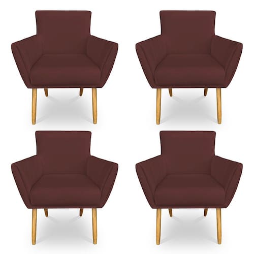 Kit 4 Poltronas Decorativa Leticia Suede Marsala Pés Palito Castanho - Pallazio