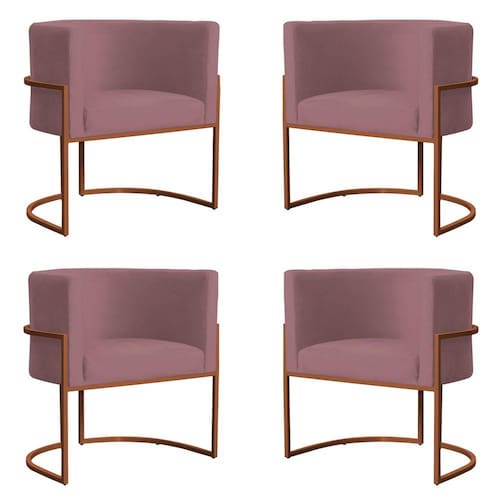 Kit 4 Poltronas Decorativa Luana Base Bronze Veludo Rosê uma Poltrona que trás vida ao seu ambiente. A Poltrona Luana é a mais inovadora do momento, com sua base em metal deixa o design mais sofisticado, e claro o conforto que essa Poltrona proporciona. Cada detalhe feita com matéria-prima de ótima qualidade, garantindo durabilidade do produto.