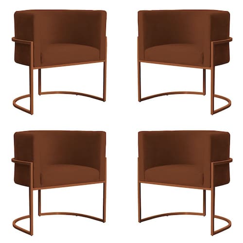 Kit 4 Poltronas Decorativa Luana Base Bronze Veludo Terracota uma Poltrona que trás vida ao seu ambiente. A Poltrona Luana é a mais inovadora do momento, com sua base em metal deixa o design mais sofisticado, e claro o conforto que essa Poltrona proporciona. Cada detalhe feita com matéria-prima de ótima qualidade, garantindo durabilidade do produto.