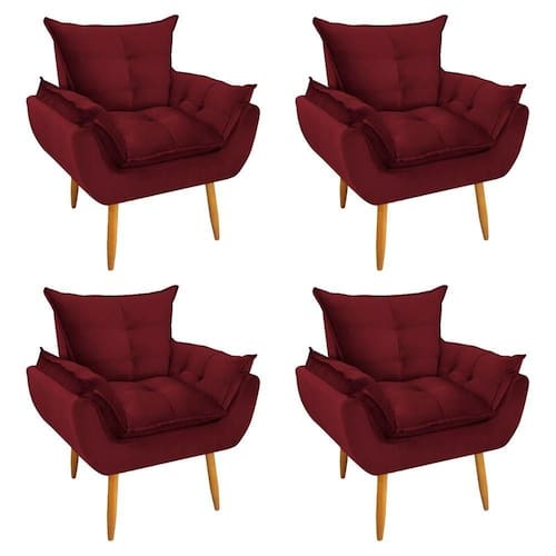 Kit 4 Poltronas Decorativa Opala Veludo Vermelho