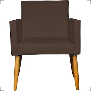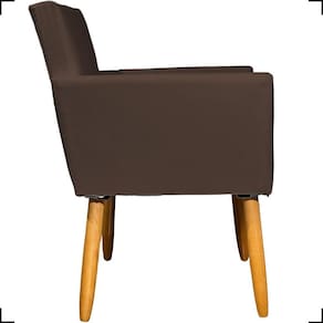 Produzida com estrutura em madeira de eucalipto, a Poltrona Nina oferece alta resistência e durabilidade, enquanto os pés palito em tom castanho proporcionam um visual moderno com inspiração retrô.