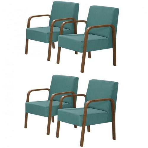 Kit 4 Poltronas Decorativas 1 Lugar Jade Braço Madeira D Salla Suede
