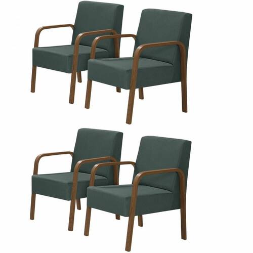 Kit 4 Poltronas Decorativas 1 Lugar Luna Braço Madeira D Salla Suede - Verde