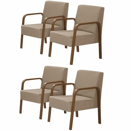 Kit 4 Poltronas Decorativas 1 Lugar Luna Braço Madeira D Salla Suede