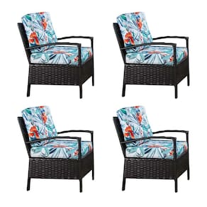 Kit 4 Poltronas em Junco para Área Externa Base Aço Guaratuba - Café - Marrom