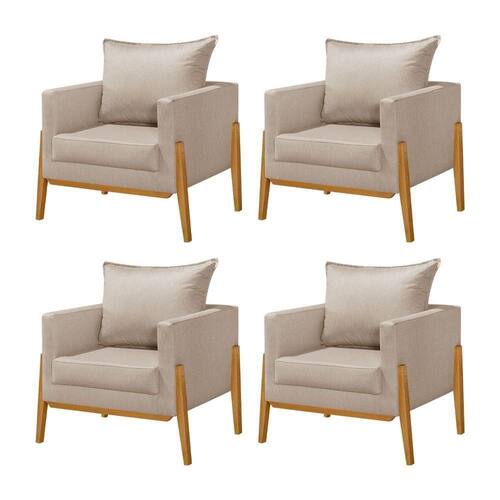 Kit 4 Poltronas Living Base E Pés Em Madeira Maciça Madagascar Linho Bege - Cor: Bege A Poltrona Decorativa Madagascar é uma combinação perfeita de conforto e estilo, com pés em madeira maciça de eucalipto. Essa poltrona oferece uma adição robusta e durável ao seu espaço, permitindo que você relaxe com total tranquilidade.CaracterísticasTipo: Poltrona Modelo: Madagascar Tecido: Linho Cor: Bege DIMENSÕES DO PRODUTOAltura: 88cmLargura: 84cmComprimento: 75cmInformações adicionais:- Materiais da estrutura: Madeira ecológica, MDF- Material dos pés: Madeira Maciça ecológica - Cor da madeira: l - Requer montagem: Sim- Limpeza: Não usar produtos abrasivos, usar apenas peno seco e limpo.- Peso máximo suportado: 100kg- Garantia: 3 Meses à partir da emissão da ÇÃOAS IMAGENS SÃO MERAMENTE ILUSTRATIVAS E PODEM SOFRER VARIAÇÕES DE COR E PEQUENOS DETALHES DE ACORDO COM O SEU MONITOR, ILUMINAÇÃO DO AMBIENTE E ATÉ MESMO A SUA PERCEPÇÃO 4 Poltronas Living Base e PÃs em Madeira MaciÃa Madagascar Linho Bege Marca: Villa Casa Decor