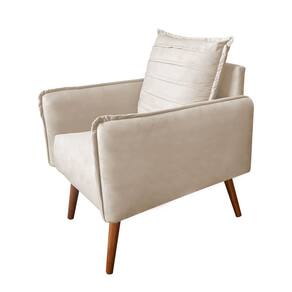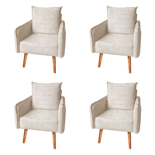 Kit 4 Poltronas Mandara para Recepção Pés Palilto Suede Bege Claro