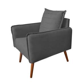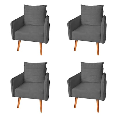 Kit 4 Poltronas Mandara para Recepção Pés Palilto Suede Cinza