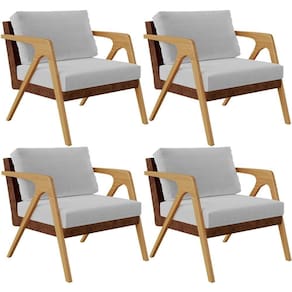 Kit 4 Poltronas Decorativas Para Sala De Estar Pietra L02 Couríssimo Marrom Linho Cinza - Lyam Decor