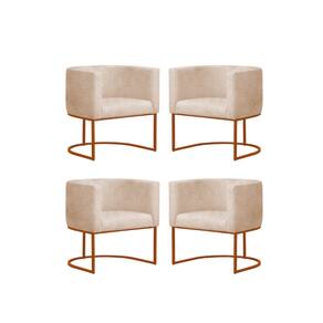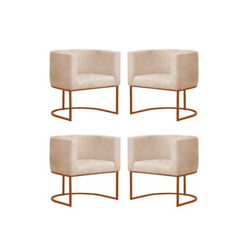 Kit 4 Poltronas Reforçada Decorativa Sala Gabriela Base Ferro Bronze Suede - Bege