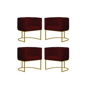 Kit 4 Poltronas Reforçada Decorativa Sala Gabriela Base Ferro Dourada Suede Marsala