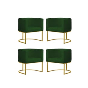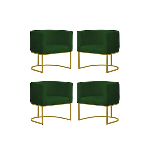 Kit 4 Poltronas Reforçada Decorativa Sala Gabriela Base Ferro Dourada Suede Verde