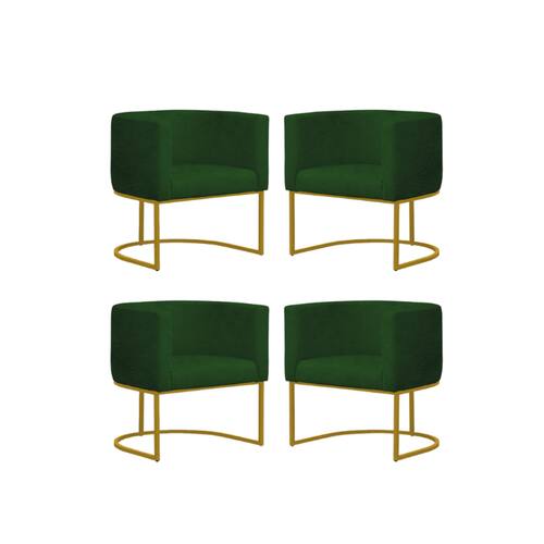 Kit 4 Poltronas Reforçada Decorativa Sala Gabriela Base Ferro Dourada Suede - Verde