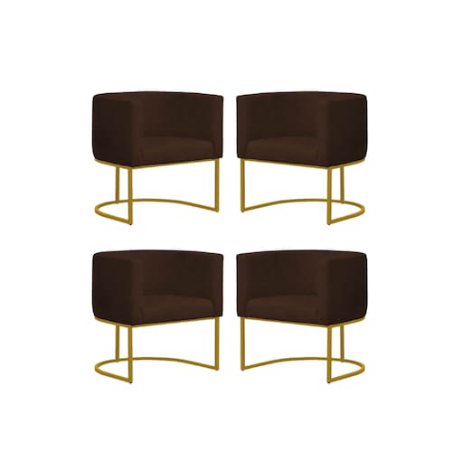 Kit 4 Poltronas Reforçada Decorativa Sala Gabriela Base Ferro Dourada Suede - Marrom