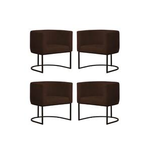 Kit 4 Poltronas Reforçada Decorativa Sala Gabriela Base Ferro Preta Suede - Marrom