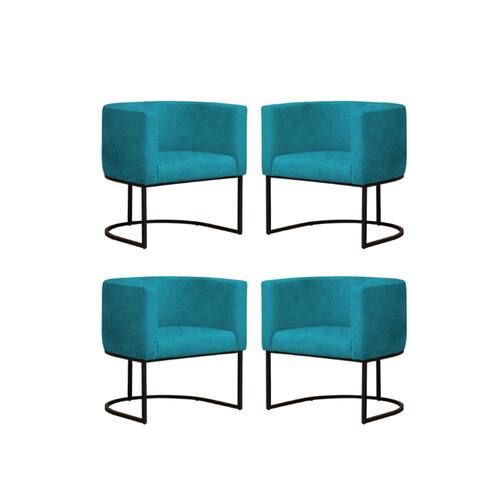 Kit 4 Poltronas Reforçada Decorativa Sala Gabriela Base Ferro Preta Suede - Azul