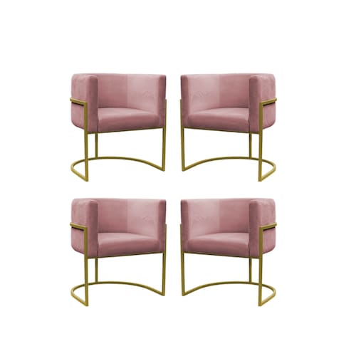 Kit 4 Poltronas Reforçadas Decorativa Sala Carla Base Ferro Dourada Suede Rose - Rosê