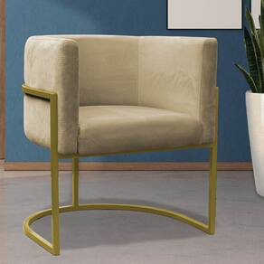 Kit 4 Poltronas Reforçadas Decorativa Sala Carla Base Ferro Dourada Suede - Bege