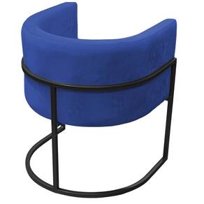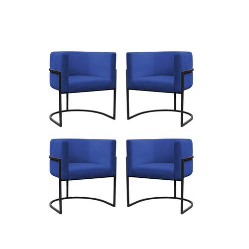 Kit 4 Poltronas Reforçadas Decorativa Sala Carla Base Ferro Preta Suede Azul Marinho
