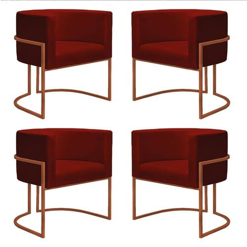 Kit 4 Poltronas Reforçadas Decorativa Sala Nayara Base Ferro Bronze Suede Marsala