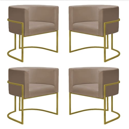 Kit 4 Poltronas Reforçadas Decorativa Sala Nayara Base Ferro Dourado Suede - Marrom Cacau