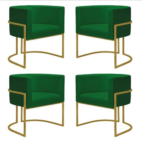 Kit 4 Poltronas Reforçadas Decorativa Sala Nayara Base Ferro Dourado Suede - Verde