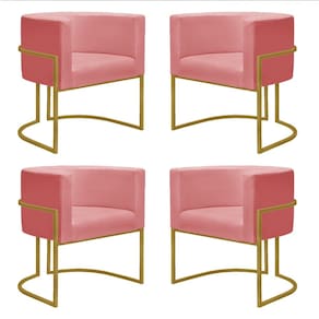 Kit 4 Poltronas Reforçadas Decorativa Sala Nayara Base Ferro Dourado Suede - Rosê