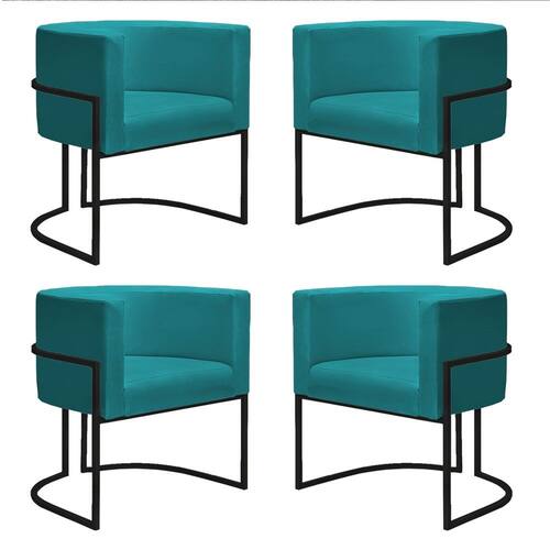 Kit 4 Poltronas Reforçadas Decorativa Sala Nayara Base Ferro Preto Suede - Azul